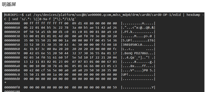 cat /sys/devices/platform/soc@0/ae00000.qcom,mdss_mdp0/drm/card0/card0-DP-1/edid | hexdump -C | sed 's/.*: \([0-9a-f ]*\) .*/\1/g'
