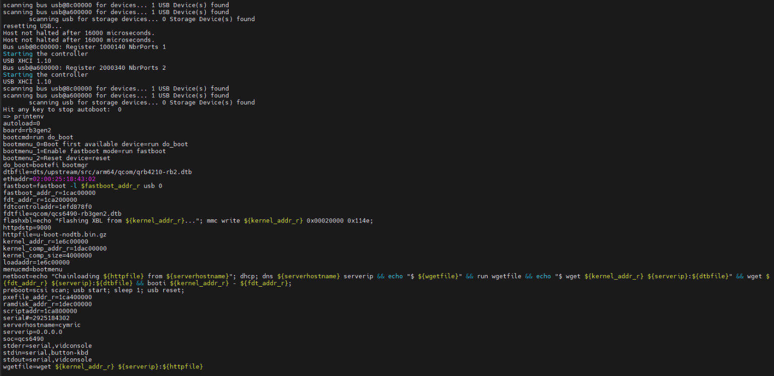 补一个uboot的环境变量图,因为自己编译的uboot无法启动,所以使用的是rb3gen2的uboot