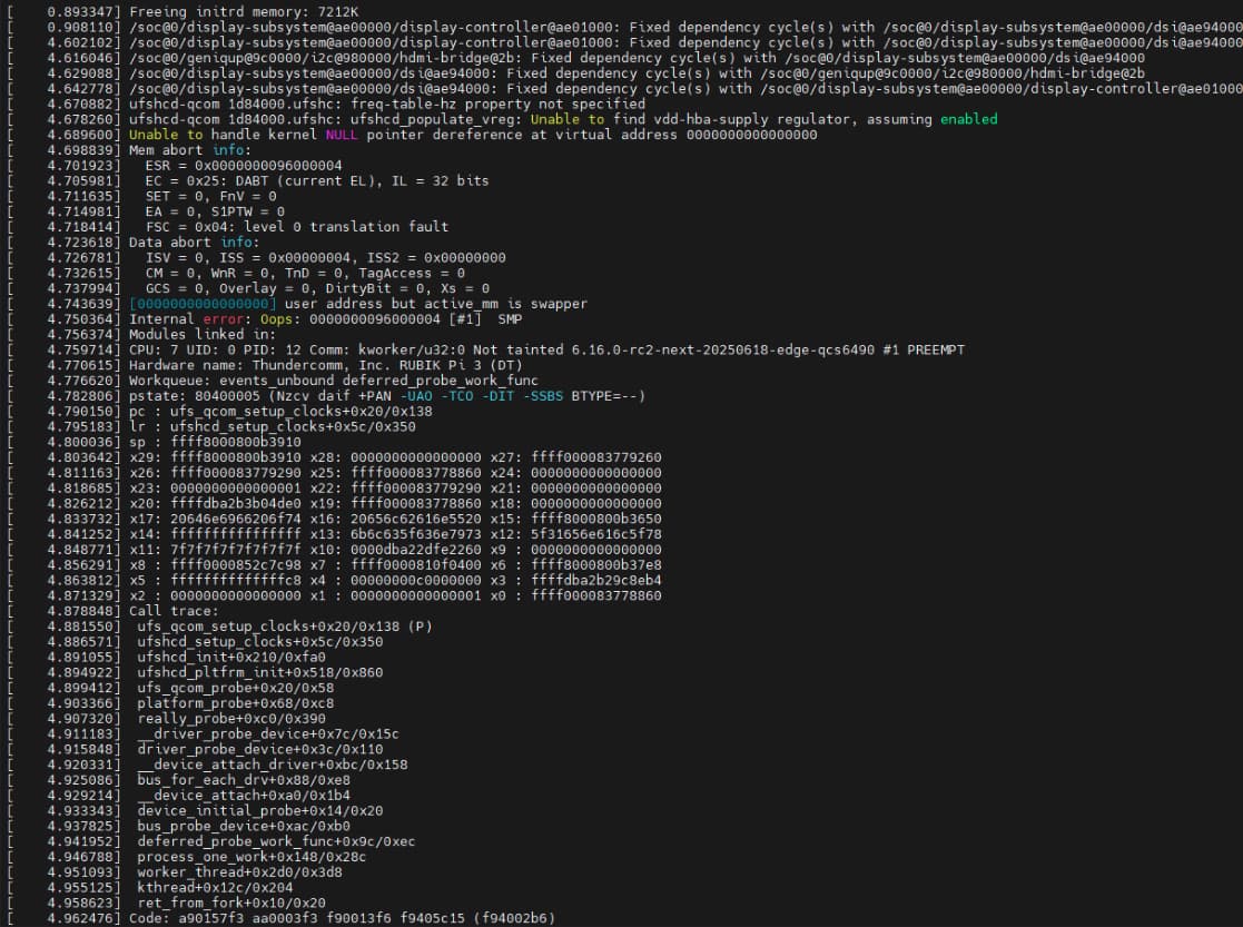 现在搞定启动了,但是会在UFS会卡在调频这边,还是无法进入系统,在6.15上也是一样dvfs调节频率的时候就会挂掉