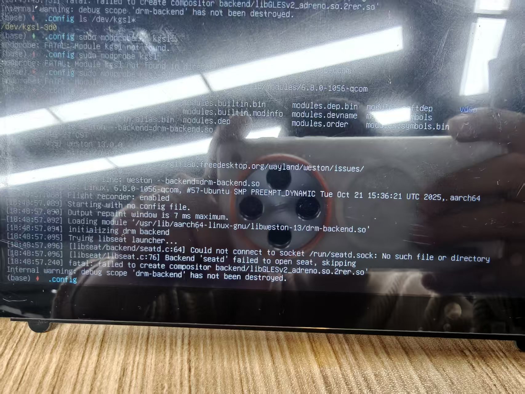 在命令行运行 weston --backend=drm-backend.so 报错,如下